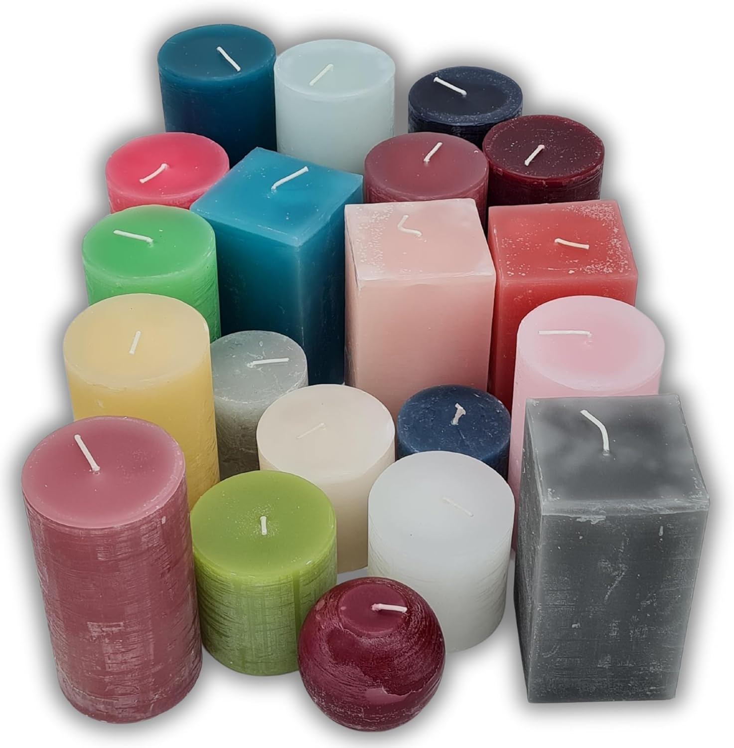 Großes Vorteilspaket – 20 kg Stumpenkerzen im beliebten Rustik-Stil